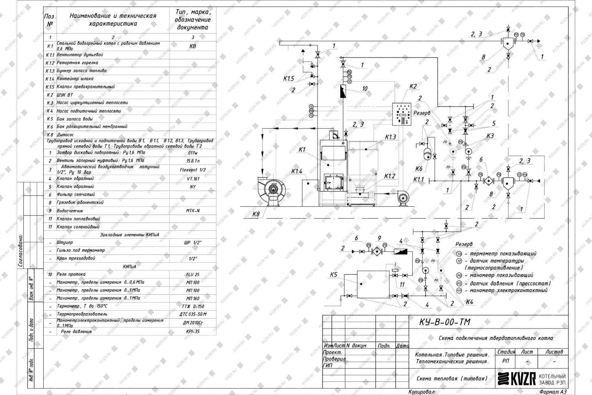 Стандартная комплектация автоматического котла 0.5 МВт производства Котельный завод РЭП: