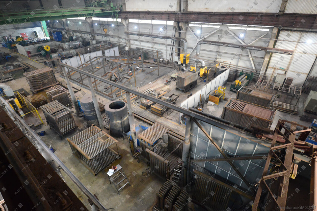 Котел с водяными колосниками выполнен моноблоком – блок котла и ручная топка. Котельный блок представляет собой сварную конструкцию, состоящую из трубной системы (радиационной и конвективной поверхности нагрева), опорной рамы и каркаса с теплоизоляционными материалами, обшитого листовой сталью. Котлоагрегаты имеют П-образную сомкнутую компоновку. Топочная камера состоит из труб Ø 57x3,5 мм и выполнена газоплотной путем плавникового оребрения.